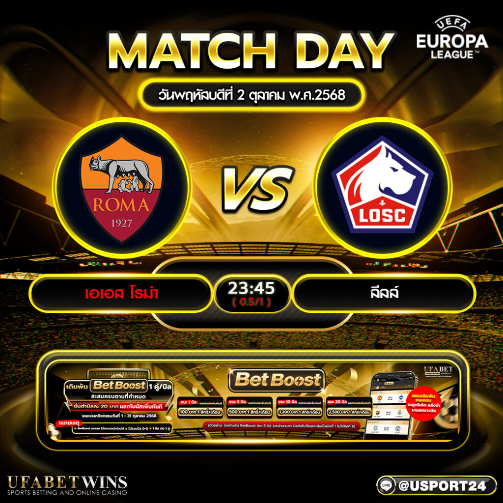 23:45 เอเอส โรม่า ลีลล์ 0.5/1 ต่อ เอเอส โรม่า