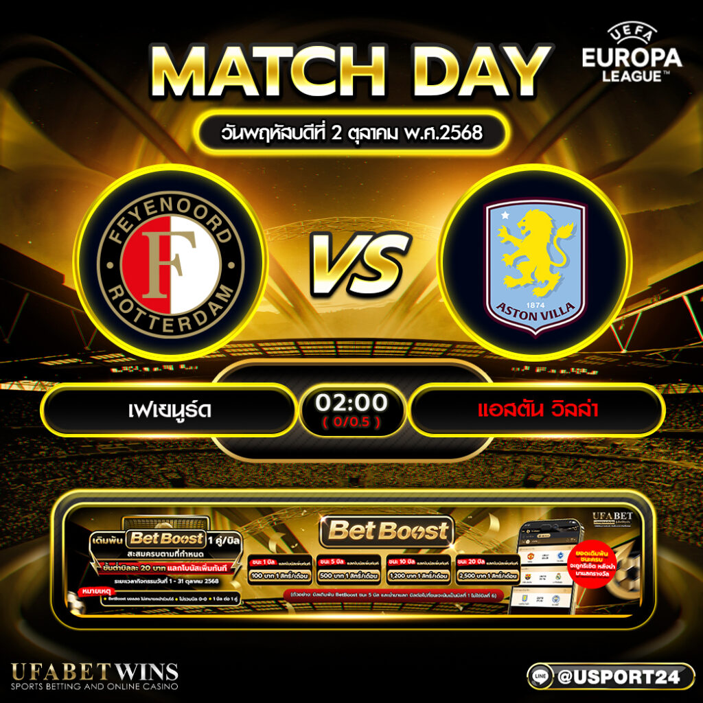 02:00 เฟเยนูร์ด แอสตัน วิลล่า 0/0.5 ต่อ แอสตัน วิลล่า