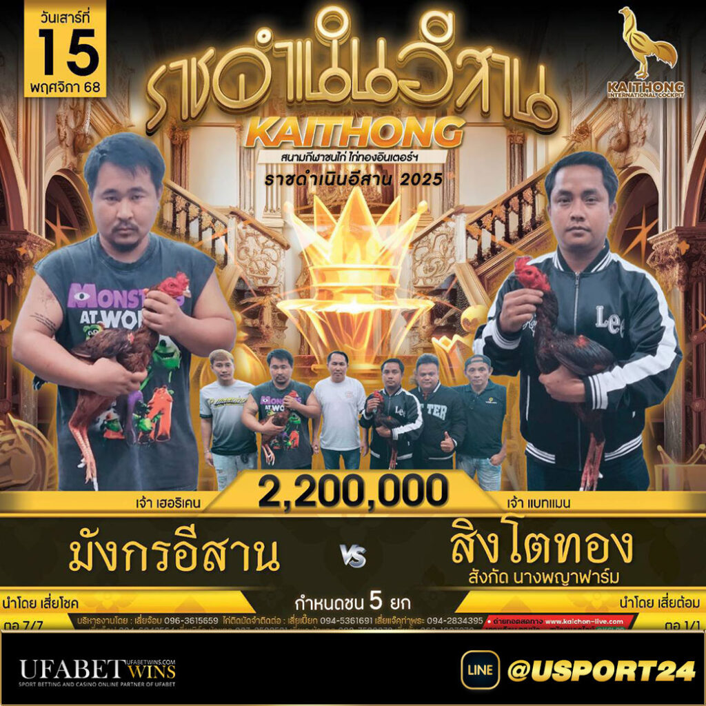 สนามไก่ทองอินเตอร์เสาร์ที่15พฤศจิกายน2568